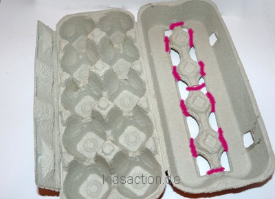 - Vom Eierkarton benötigen wir aus dem Deckel 2x2 Rautenteile am Stück die vorsichtig mit einem schafren Messer herausgelöst werden