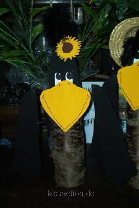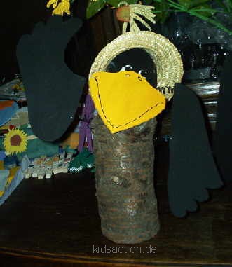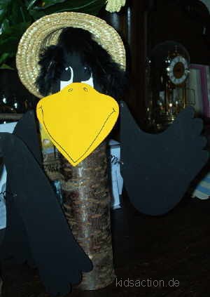 - Gesicht auf-, Schnabel und Flügel bemalen