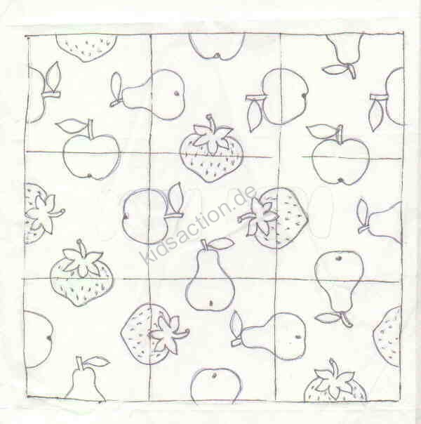 - und zersägt die Platte in 9 gleichmäßige Teile, (mitten durch die Früchte)